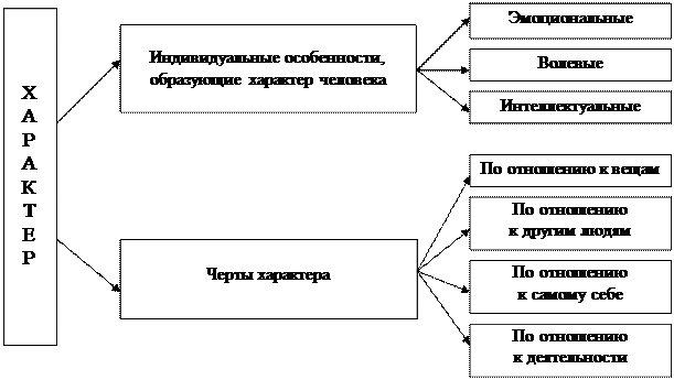 Структура характера – целостная организация отдельных свойств, каждое из которых проявляется в деятельности, формируется и закрепляется в отношениях человека к действительности. Структура и содержание характера каждого человека определяются: · динамикой воли (решительность, настойчивость, самообладание, самостоятельность, инициативность); · спецификой проявления эмоций человека, которые сопровождают те или иные его поступки (жизнерадостность, впечатлительность, угнетенность, безразличие); · интеллектуальными особенностями человека (глубокомыслие, сообразительность, находчивость, любознательность); · взаимосвязью всех этих компонентов (для структуры характера важно то, насколько они слиты воедино, гармоничны ли они между собой или же, наоборот, находятся в конфликте). Черты характера – это те существенные свойства человека, из которых с определенной логикой и внутренней последовательностью вытекает одна линия поведения, одни поступки (рис. 98)[60].