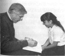 Укажите каждое слово, которое Запускает дезориентацию. Продолжайте таким образом, пока ученик не сможет быстро и легко ставить умственный глаз в точку ориентации и видеть получающуюся в результате разницу в восприятиях и поведении. Когда ученик сможет быстро и легко ставить умственный глаз в точку ориентации и знать, что он это сделал, занятие по ориентации закончено. ГЛАВА 28 Разрядка и проверка По мере того, как дислектики будут развивать навыки ориентации, для них будет становится очевидным, что если умственный глаз не смещается, то они не делают ошибок. По мере того, как они будут больше осознавать свое состояние ориентации, они станут замечать, что каждый раз, когда их умственный глаз смещается, они дезориентируются. После того, как они дезориентируются, они либо будут делать ошибки при чтении, либо автоматически включат какое-нибудь "старое решение". Казалось бы, что следующим логическим навыком, который необходимо развить, был бы способ удерживания умственного глаза в точке ориентации. Это легко сделать, и большинство учеников попробуют сделать это. К сожалению, обычно это вызывает сильную головную боль. Вероятной причиной является то, что на самом деле умственный глаз не смещается сам по себе. Ученик на Разрядка и проверка подсознательном уровне заставляет его смещаться. Его смещение является укоренившейся привычкой. Когда ученик будет знать об ориентации и преимуществах, получаемых в том случае, если умственный глаз не будет смещаться, это не предотвратит его от естественной реакции на состояние спутанности сознания. Итак, когда ученик оказывается в состоянии спутанности сознания, он попытается сместить умственный глаз и одновременно попытается не допустить его смещение - буквально, он будет работать против себя. Мы называем это удерживанием. Оно создает напряжение, результатом чего является головная боль. Если просто сказать ученикам, чтобы они не удерживали умственный глаз в точке ориентации, то это не будет иметь результата. Это все равно, что сказать им, чтобы они не думали о слоне: это заставит их думать о слоне вместо того, чтобы не думать о нем. Чем больше они будут стараться не удерживать свой умственный глаз, тем сильнее будет становиться удерживание. Кроме того, нет причины не дезориентировать их, если это соответствует ситуации и полезно. Ученики, которые будут неподвижно удерживать умственный глаз в точке ориентации, обычно начнут трогать и потирать свою шею сзади. Когда вы увидите, что они это Делают, вмешайтесь, предложив процедуру "Разрядка". Признаки удерживания: 1. Ученик жалуется на головную боль. 2. Ученик потирает или трогает шею сзади. 3. Кожа бледнеет. 4. Брови нахмурены. Что мы с этим делаем 5. Ученик начинает выглядеть как человек находящийся в состоянии стресса или сильной усталости. Процедура "Разрядка" Ознакомьте ученика с процедурой "Разрядка", прочитав или рассказав ему эти этапы. Делая это, убедитесь, что до того как переходить к следующему этапу, он выполнил требуемое действие. Если он говорит "не могу" или не уверен в том, выполнил ли он действие, скажите: "Представь, как это должно было бы быть сделано". Сожми кулак - не очень сильно. Просто согни пальцы в ладони. Теперь подумай "открытая рука", но вместо того, чтобы открыть руку, сожми кулак сильнее. Опять подумай "открытая рука" и сожми кулак еще 