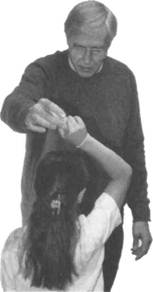 Ее умственный глаз находится слишком низко и смещен вправо. Что мы с этим делаем Возьмите палец ученика своим большим и указательным пальцем и осторожно подтяните его к линии симметрии тела. Постучите по кончику его пальца своим указательным пальцем и скажите: "Подтяни точку сюда, отрегулировав линии. Скажи мне, когда она будет здесь". Опять постучите по пальцу.