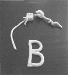 Слово "быть" и его другие формы, например, "есть", "будешь", "была", являются самыми трудными для освоения словами в списке. Оставь их для освоения в последнюю очередь, и пусть у тебя под рукой будет учебник граматики. Добейся того, чтобы твои пластилиновые модели и фигуры были "реалистичны". Это не означает, что они должны быть в высшей степени художественными или абсолютно такими, как в жизни. Это значит, что они должны быть трехмерными и должны представлять физическую реальность так, чтобы ее можно было узнать. Они не должны быть слишком абстрактными или символичными. Маленький шарик пластилина не может представлять машину; у этого шарика должно быть по крайней мере четыре колеса. "Освоение символов " применительно к словам 9. Пластилиновая модель человечка может быть сделана так, что она будет похожа на палку, но она должна быть достаточно большой и прочной, чтобы она могла стоять сама по себе. Когда тебе нужно показать действие или эмоцию, необходимо, чтобы у модели были руки и ноги, которые можно соответствующим образом расположить, и голова, на лице которой можно вырезать соответствующее выражение. 10. С помощью пластилиновых стрелок показывай направление или последовательность. 11. С помощью пластилиновой веревочки сделай "комиксный пузырек" и присоедини его к голове человечка, чтобы показать, что ему в голову пришла идея или что он о чем-то думает. В рамках этого "пузырька" покажи, что происходит у него в уме. 12. Сделай из пластилина буквы слов в их строчном "печатном" варианте, в таком, в котором они чаще всего встречаются в книгах. Только имена собственные всегда пишутся с большой буквы. После того, как ты сделал слово из пластилина, проверь и убедись, что его орфография правильная. 13. Некоторые слова группируются по разным временам и формам. Для полного их понимания ты должен воспользоваться учебником грамматики. Это возможность выучить и освоить то, что случится со словом, когда ты добавишь к нему различные окончания, например, - л, - ть, и - шъ, а также, как слова могут меняться в зависимости