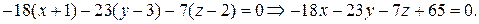 Решение. Уравнение плоскости, проходящей через три точки