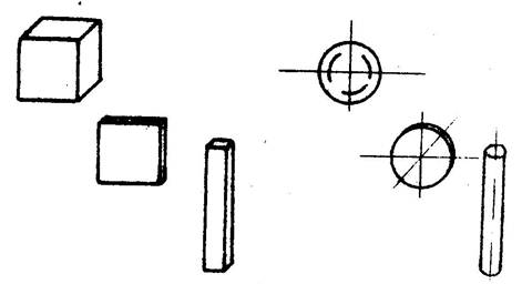 Рис.1. Геометрический вид формы Положение формы в пространстве определяется по отношению к зрителю и по отношению к трем координатным плоскостям. В зависимости от того, в какой плоскости находится доминирующая поверхность объекта, говорят о фронтальном, профильном или горизонтальном типовых положениях (рис.2).