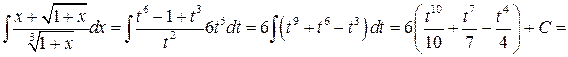г) Наименьшее общее кратное показателей корней равно 6, поэтому выполним подстановку