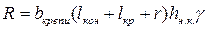 Крепь очистного забоя непрерывно взаимодействует с непосредственной кровлей и периодически, по мере ее обрушения – с основной кровлей. В определенных условиях основная кровля не оказывает влияния на поведение непосредственной кровли. Отслаиваясь от основной, непосредственная кровля своим весом оказывает давление на крепь. Секция крепи должна выдержать вес непосредственной кровли с учетом возможного ее зависания в выработанном пространстве. В технической характеристике крепи указано сопротивление ее поддерживающей части. Величина сопротивления изменяется в пределах от 300 до 1000 кН/м2. Зная вес непосредственной кровли, можно проверить, выдержит ли секция крепи эту нагрузку. Расчетная схема представлена на рис. 2.2. Согласно расчетной схеме, нагрузка R на поддерживающую часть секции крепи составит