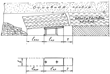 где bкрепи – шаг установки крепи, м; lкон – возможная величина зависания кровли, м; lкр – длина крепи, м; hнк – высота непосредственной кровли, м;