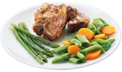 Общее количество овощей должно составлять примерно 200 – 250 гр. Далее, вторую половину делим мысленно еще пополам. Одну часть этой половины тарелки заполняем любым гарниром (крупа, рис, картофель, макароны, фасоль и т.д.) в количестве 100 гр. в готовом виде. На другой части этой половины помещаем любой белковый продукт животного происхождения:
