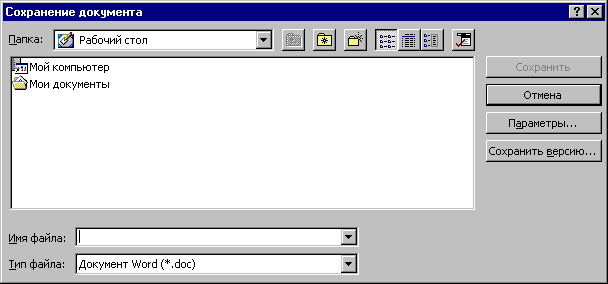Сохранение документа. Сохранить текст – записать его на диск, присвоив имя