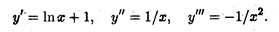 Пример 3. Найти производную третьего порядка от функции у = х In х. Решение. Последовательно находим