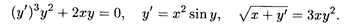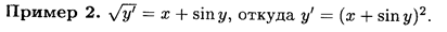 Приведем примеры уравнений, которые можно разрешить относительно производной неизвестной функции у'. Пример 1. (y')2 = x 2 + у 2, откуда получаем два уравнения первого порядка у' = ±