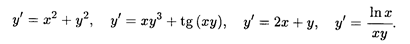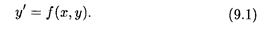 Уравнение (9.1) называется уравнением первого порядка, разрешенным относительно производной. В дальнейшем будем рассматривать уравнения первого порядка именно такого вида. Примеры уравнений, разрешенных относительно производной: