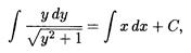 Интегрируя обе части этого уравнения (правую по x, а левую по у), имеем