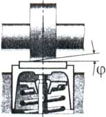 Рис.32. Кулачки серійного (а) і гоночного (б) ДВЗ До кожної опори підводиться масло — через отвори у опорах підшипників або (рідше) через отвір у одній опорі (тоді інші підшипники змащуються через полий розподільний вал і канали до підшипників у ньому). Форма кулачків (рис. 32) визначає закон і тривалість підйому клапанів. Існують несиметричні кулачки, які забезпечують невідривання штовхача від клапана при великих прискореннях. Кути їхнього розташування залежать: для однойменних кулачків — від числа циліндрів і чергування робочих ходів у різних циліндрах, для різнойменних — від фаз газорозподілу. Кулачки можуть мати конусну або підрізану форму для забезпечення провертання штовхача, або розташовуватися несиметрично відносно осі штовхача (рис. 33).