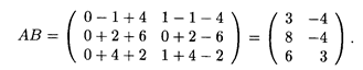 Решение. Поскольку число столбцов матрицы А равно числу строк матрицы В, то произведение матриц АВ имеет смысл. По формулам (13.4) получаем в произведении матрицу размером 3 х 2: