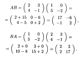 Решение. Здесь мы найдем произведения данных матриц АВ и ВА: