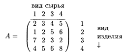Тогда решение задачи дается вектором затрат, координаты которого и являются величинами затрат сырья по каждому его виду; этот вектор затрат вычисляется как произведение вектора