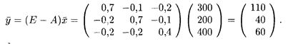 Используя формулу (16.1) и правило сложения матриц, получаем вектор объемов конечного продукта, предназначенного для реализации вне отрасли, состоящей из 3-х предприятий: