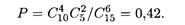 Отметим, что современные курсы теории вероятностей основаны на теоретико-множественном подходе, в котором элементарные события являются точками пространства элементарных событий Ω; при этом событие А отождествляется с подмножеством элементарных исходов, благоприятствующих этому событию, А Приведем примеры непосредственного вычисления вероятностей. Пример 4. В коробке лежит 10 шаров: 6 белых и 4 черных. Найти вероятность того, что из пяти взятых наугад шаров будет 4 белых. Решение. Найдем число благоприятных исходов: число способов, которыми можно взять 4 белых шара из 6 имеющихся, равно C Пример 5. Какова вероятность того, что при заполнении карточки спортивной лотереи "6 из 36" будет угадано 4 номера? Решение. Общее число исходов равно C Пример 6. В ящике находится 10 стандартных и 5 нестандартных деталей. Какова вероятность, что среди наугад взятых 6 деталей будет 4 стандартных и 2 нестандартных? Решение. Общее число исходов равно С