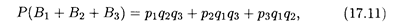где q1 = 1 – p 1, q 2 = 1 - р 2. Аналогичным образом можно убедиться в справедливости формулы вероятности наступления только одного из трех независимых событий A 1, А 2, А 3 с вероятностями наступления соответственно р 1, р 2и р 3: