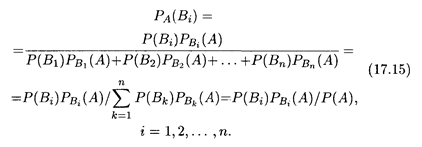 Пусть события B 1, B 2,..., Вп несовместны и образуют полную группу, а событие А может наступить при условии появления одного из них. События Bi называют гипотезами, так как заранее неизвестно, какое из них наступит. Пусть произведено испытание и в результате появилось событие А. Тогда оказывается возможным определить условные вероятности гипотез Bi по следующим формулам:
