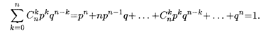 Можно показать, что сумма всех вероятностей второй строки этой таблицы равна единице, т.е.