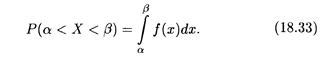 Вспоминая геометрический смысл определенного интеграла (см. п. 7.5), можно сказать, что вероятность того, что непрерывная случайная величина Х примет значение, принадлежащее интервалу (α, β), равна площади криволинейной трапеции, ограниченной сверху кривой плотности распределения f (x), снизу — осью Ох, а с краев — вертикальными прямыми х = α и х = β (рис. 18.4).