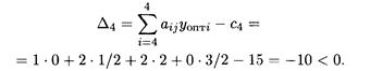 Если изменение сырья не находится в пределах устойчивости оценок, то необходимо найти новые условные оценки, т.е. решить задачу симплексным методом с изменением количества сырья соответствующих видов. 4. Для оценки целесообразности введения в план производства фирмы четвертого вида изделий используем формулу