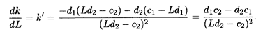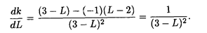 Установим, как будет вести себя угловой коэффициент k при монотонном возрастании L. Найдем производную от k по L: