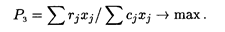 Математическая модель задачи дробно-линейного программирования может быть использована для определения рентабельности затрат на производство изделий, рентабельности продаж, затрат в расчете на рубль выпускаемой продукции, себестоимости изделий. Обозначим: rj — прибыль предприятия от реализации единицы изделия j -гo вида; xj — количество выпущенной продукции j- гo вида; sj — цена единицы продукции j- гo вида; cj — себестоимость производства единицы изделия j- гoвида; dj — затраты на производство одного изделия j -гo вида. Задача рентабельности (Р з) затрат на производство изделий имеет вид