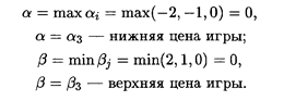 Решение. Находим α = mах (-1,2) = 2, β = min (4, 3, 3, 6) = 3, 2≤ v ≤ 3. Тогда