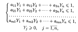 Аналогично второму игроку оптимальная стратегия yj оптдолжна обеспечить при любых стратегиях первого игрока проигрыш, не превышающий цену игры, т.е. справедливо соотношение