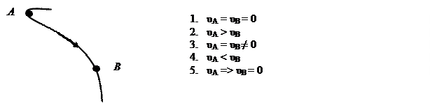36. Тело движется с постоянным нормальным ускорением по траектории, изображенной на рисунке. Для величины скорости тела в точке А υА и величины скорости тела в точке В υВ справедливо соотношение …