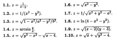 Найти области определения следующих функций.
