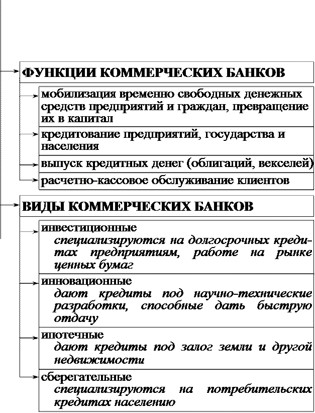 коммерческие банки – это кредитные организации, в которых собираются на депозитах временно свободные денежные средства предприятий и граждан с целью их последующего предоставления в кредит (ссуду) за определенную плату (банковский процент)
