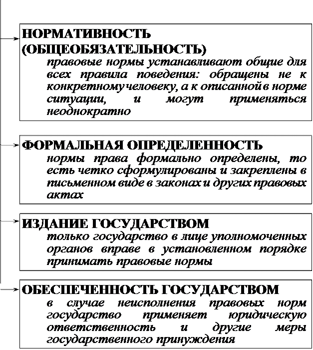 право – это система социальных норм, которые устанавливаются и защищаются государством, формально определены и общеобязательны для всех членов общества