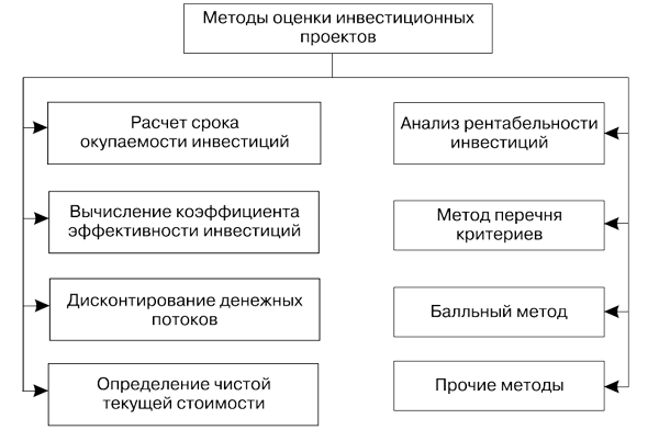 Существует ряд методов оценки инвестиционных проектов (рис. 13.1). Какого-то универсального метода, пригодного для всех ситуаций, нет.