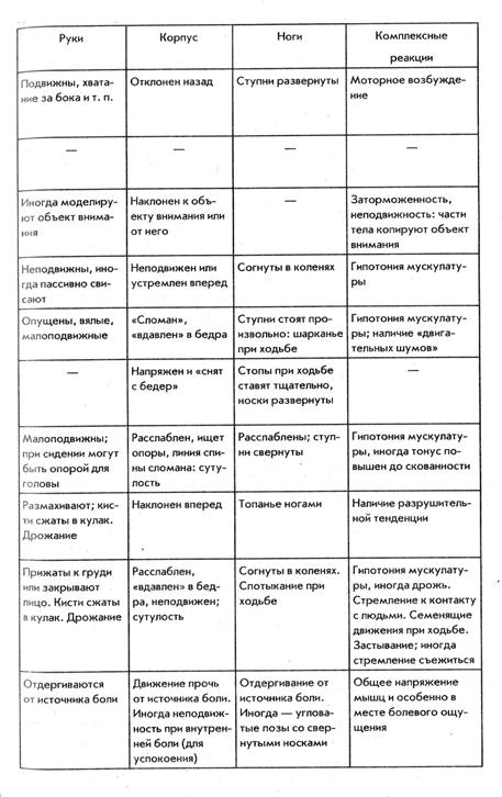 Порядок работы. Лабораторное занятие состоит из двух частей. В 1-м опыте испытуемый оценивает произвольные эмоции по фотографиям, во 2-м опыте - непроизвольные эмоции по киносюжету (или видеофильму). Для выполнения опыта 1 занятия студенты делятся на пары, причем один из членов пары выполняет роль экспериментатора, а второй - испытуемого. Перед экспериментом экспериментатор зачитывает испытуемому инструкцию. Инструкция испытуемому: «Вам будут предъявлены несколько фотографии, где изображен человек в разных эмоциональных состояниях. Ваша задача заключается в том, чтобы, выделив опорные элементы и экспрессивные признаки, оценить интенсивность проявления каждого из признаков. Если признак едва проявляется, то оценивайте его единицей, а если проявляется отчетливо - то двойкой». Затем экспериментатор берет фотографию, заносит в протокол ее номер и название запечатленной на ней эмоции (об этом можно узнать на оборотной стороне фотографии). Далее он показывает фотографию испытуемому, который должен назвать опорный элемент тела изображенного человека, выделить основной признак эмоционального состояния и дать ему оценку. Все ответы испытуемого экспериментатор фиксирует в протоколе для каждой новой фотографии отдельно. Интенсивность проявления признака оценивается по 2-балльной шкале: 2 - признак проявляется отчетливо, 1 - признак едва проявляется. Студены в паре меняются ролями и экспериментатор становится испытуемым, а испытуемый - экспериментатором. Следует позаботиться, чтобы в этом случае для предъявления были использованы уже другие фотографии, т. е. исходный набор 10-20 фотографий следует разделить на две части До начала опытов. В опыте 2 занятия все студенты группы становятся испытуемыми. Преподаватель или его помощники показывают фильмы всей группе студентов одновременно. Каждый студент сам ведет записи в протоколе, оценивая просмотренные киносюжеты. Каждый киносюжет преподаватель показывает 2-3 раза. Для того чтобы не влиять на оценки, даваемые испытуемыми, названия киносюжетов преподаватель сообщает им лишь после предъявления всех фильмов, т. е. когда все оценки уже проставлены в протоколе. Перед демонстрацией кинофильмов преподаватель знакомит группу студентов с инструкцией. Инструкция испытуемым: «Вам будут предложены киносюжеты, где изображены люди, испытывающие разные эмоции. Ваша задача состоит в том, чтобы, выделив опорные элементы и экспрессивные признаки, зафиксировать в протоколе частоту проявления каждого признака в киносюжете». По ходу демонстрации киносюжета испытуемый записывает в графе «Частота появления», сколько раз во время просмотра фильма он заметил искомый признак. Обработка результатов, согласно двум частям задания, состоит оценки фотографий и оценки киносюжета. I. Оценка фотографий: 1. Подсчитать количество выделенных признаков для каждого опорного элемента и суммарную интенсивность проявления признаков для каждого из опорных элементов. Эти вычисления следует повторить для данных, полученных при оценке каждой из предъявленных фотографий. 2. Построить гистограммы и профили эмоций. Для этого на ось абсцисс надо нанести названия опорных элементов и на ось ординат в одном случае количество выделенных признаков, а в другом - их интенсивность. II. Оценка киносюжета: 1. Подсчитать количеств