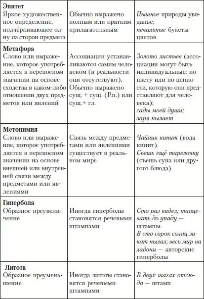 Средства выразительности делятся на две группы: тропы (лексический уровень языка) и фигуры речи (синтаксический уровень языка).