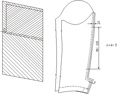 Рисунок 4. Последовательность выполнения разреза швов (а-контуры срезов деталей в сечении;.б-сечение, в-разрез швов, г- разрез швов с ТУ)