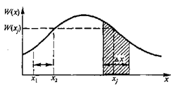Видно, что энтропия сообщения представляет собой математическое ожидание собственной информации, содержащейся в ансамбле сообщений Х 0. Таким образом, энтропия является универсальной статистической характеристикой, позволяющей оценить количество информации, которая содержится в любом ансамбле дискретных событий. Понятие энтропии применимо и к непрерывным событиям. В системах обработки информации и управления значительная доля информации имеет непрерывный характер и выражается в виде непрерывной функции от времени. В этом случае возникает задача передачи непрерывной информации в виде непрерывных сообщений по каналам связи. Непосредственная передача непрерывных сообщений без преобразования возможна лишь на незначительные расстояния. С увеличением расстояний осуществляют операцию дискретизации информации. Для этого вводят квантование по времени и по уровню. Непрерывная функция передается в виде совокупности мгновенных либо квантовых отсчетов, выбранных с различными интервалами по времени. Оценим количество информации, которая содержится в одном отсчете непрерывной функции, и найдем общее выражение для энтропии непрерывных событий. Пусть имеет место непрерывная информация, представленная в виде непрерывной функции x(t) сизвестной плотностью распределения вероятностей амплитудных значений W(х). Разобьем область значений функции на K уровней с интервалом квантования