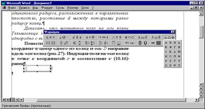 Word редакторында формулалық өрнектерді енгізу Формулалар редакторы Формула редакторын іске қосу үшін курсорды формула енгізілетін орынға қойып, Вставка – Объект – Microsoft Equation 3.0 командаларын орындаймыз. Формулалар редакторында формуланы редакциялау үшін оған тышқанды екі рет шерту немесе Түзету – Объект Формула – Өзгерту (Изменить) командасын шақыру қажет. Формулалар редакторы іске қосылған кезде Word терезесінің меню қатары өзгереді. Жұмыс аумағында тіктөртбұрыш болып объект ауданы белгіленіп тұрады (формула жазған кезде аумақ автоматты түрде ұлғайып отырады), формулалар редакторының саймандар тақтасы пайда болады. Осы саймандар тақтасында математикалық және басқа да қолданылатын символдар батырмалары орналасқан. Формула редакторының жұмыс аумағында математикалық символдар саймандар тақтасындағы Формула редакторы батырмасының көмегімен енгізіледі.