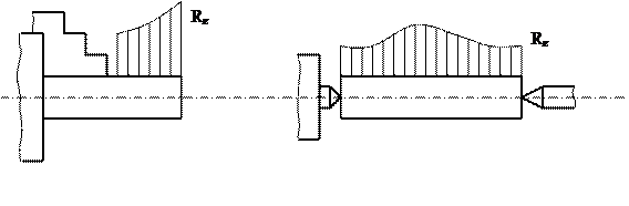 Рис. 23 Эпюры величины Rz: а - закрепление в патроне; б - закрепление в центрах