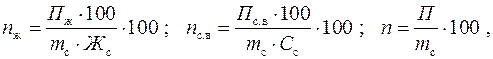 где П ж, П с.в – потери жира и сухих веществ, кг. Потери выражают также и в процентах от переработанного жира, сухих веществ или сырья: