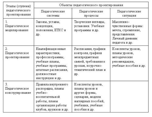 Выделяют три этапа (ступени) проектирования: Этапы педагогического проектирования