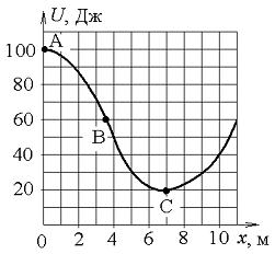 Небольшая шайба начинает движение без начальной скорости по гладкой ледяной горке из точки А. Сопротивление воздуха пренебрежимо мало. Зависимость потенциальной энергии шайбы от координаты х изображена на графике