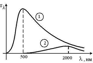 На рисунке показаны кривые зависимости спектральной плотности энергетической светимости абсолютно черного тела от длины волны при разных температурах. Если длина волны, соответствующая максимуму излучения, увеличилась в 4 раза, то температура абсолютно черного тела …