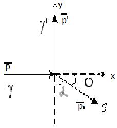 (1), где - импульс падающего фотона (), - импульс рассеянного фотона (), - импульс электрона отдачи (после взаимодействия с фотоном). Импульс электрона до взаимодействия с фотоном равен нулю, т.к. он находился в состояние покоя.