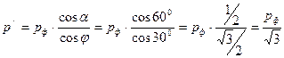 На рисунке показаны направления падающего фотона , рассеянного фотона и электрона отдачи (e). Угол рассеяния 90°, направление движения электрона отдачи составляет с направлением падающего фотона угол . Если импульс падающего фотона Pф, то импульс рассеянного фотона равен…