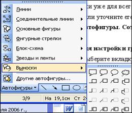На панели инструментов Рисование выберите пункты Автофигуры – Выноски ( рис. 56 ). Выберите нужный пункт.