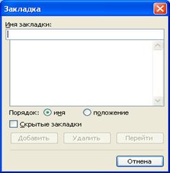 Рисунок 64 – Диалоговое окно команды Вставка – Закладка