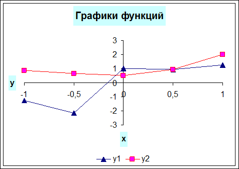 Задание 2: Вычислите значения функций в зависимости от значений аргумента на интервале [-1;1] с шагом 0,5 и постройте их графики в одной координатной плоскости: а)